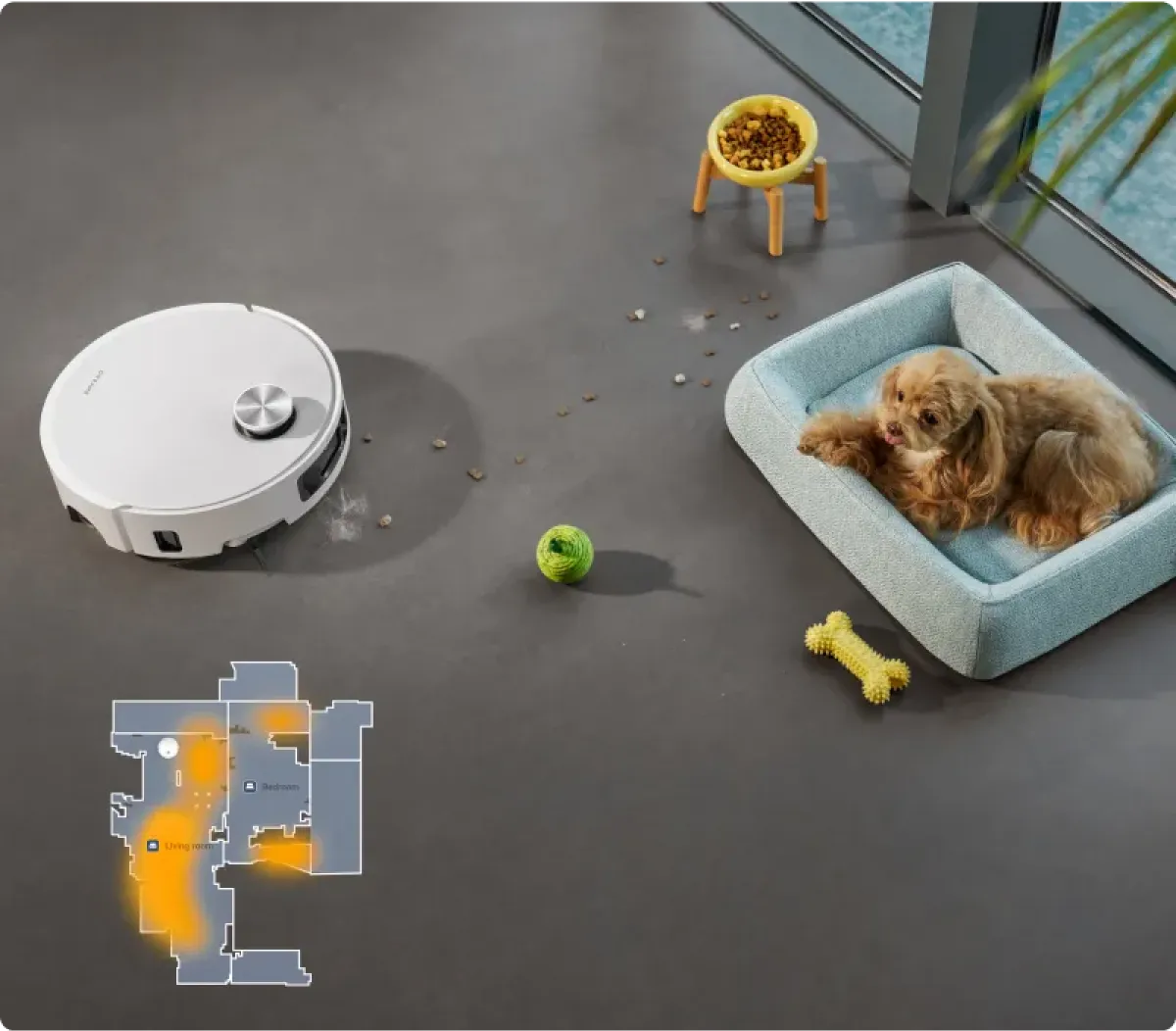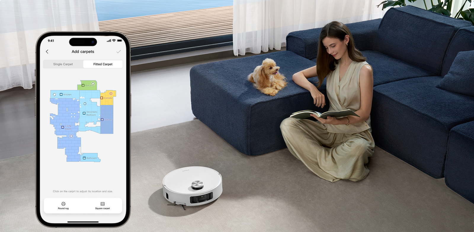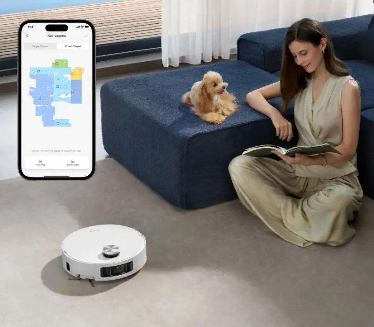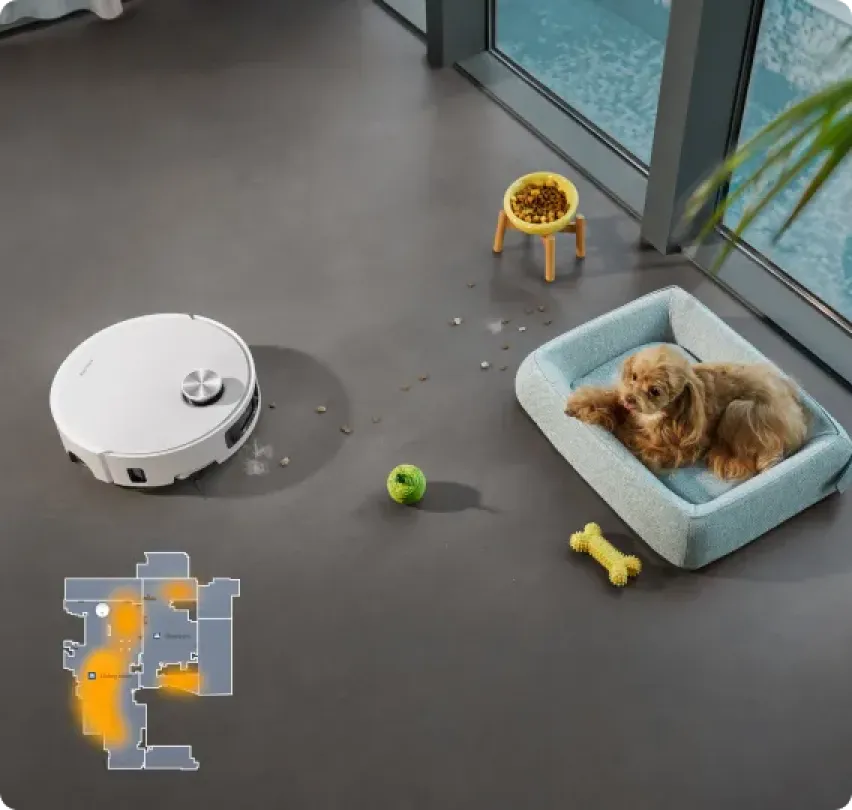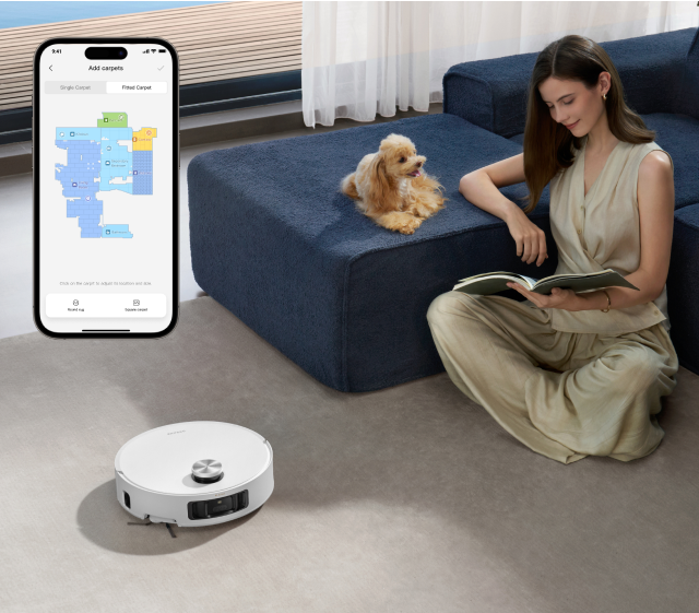 ** Intensywne czyszczenie dywanów: opcja dostępna w aplikacji do sprzątania. Po uruchomieniu robot odkurzający odpowiednio zmniejszy prędkość i dwukrotnie wyczyści dywan.