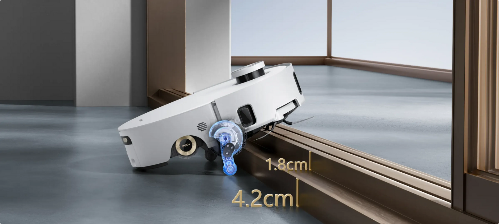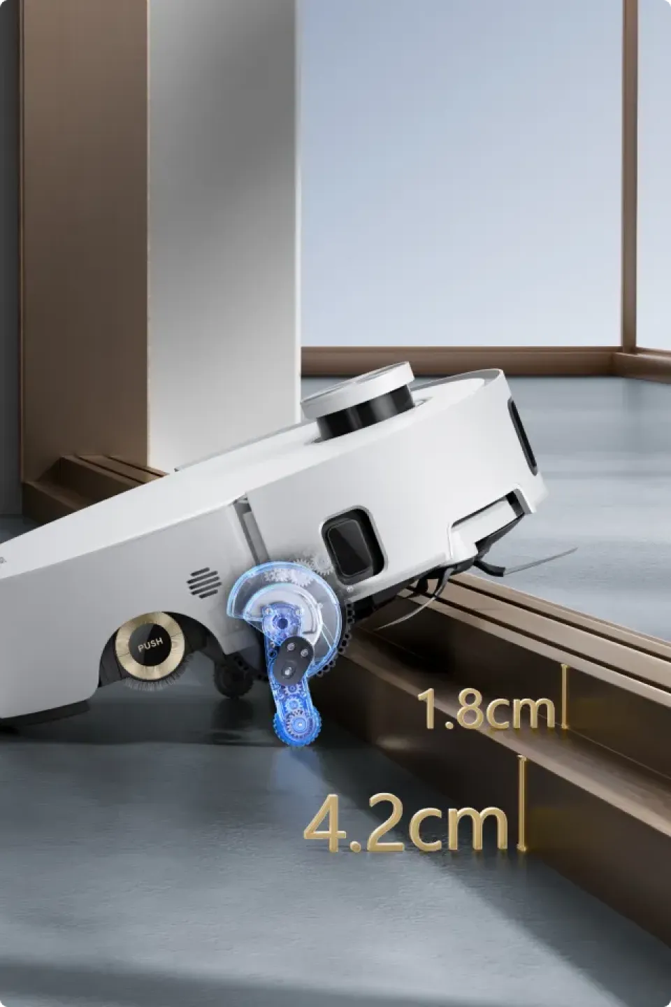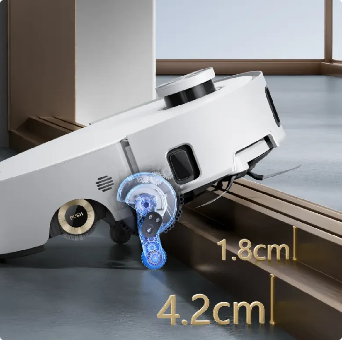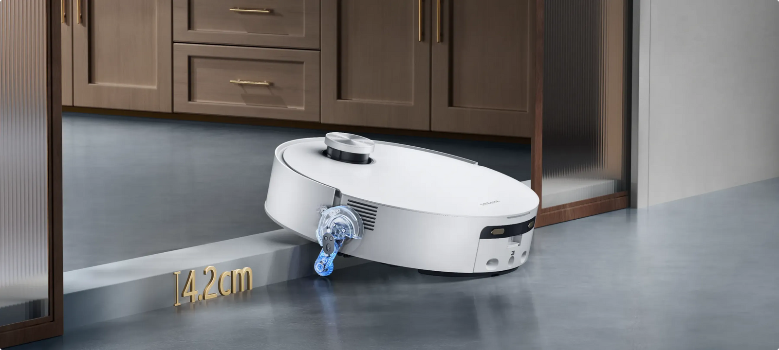 * 14 mm: różnica wysokości robota odkurzającego wynosi 14 mm przed i po podniesieniu mopa.