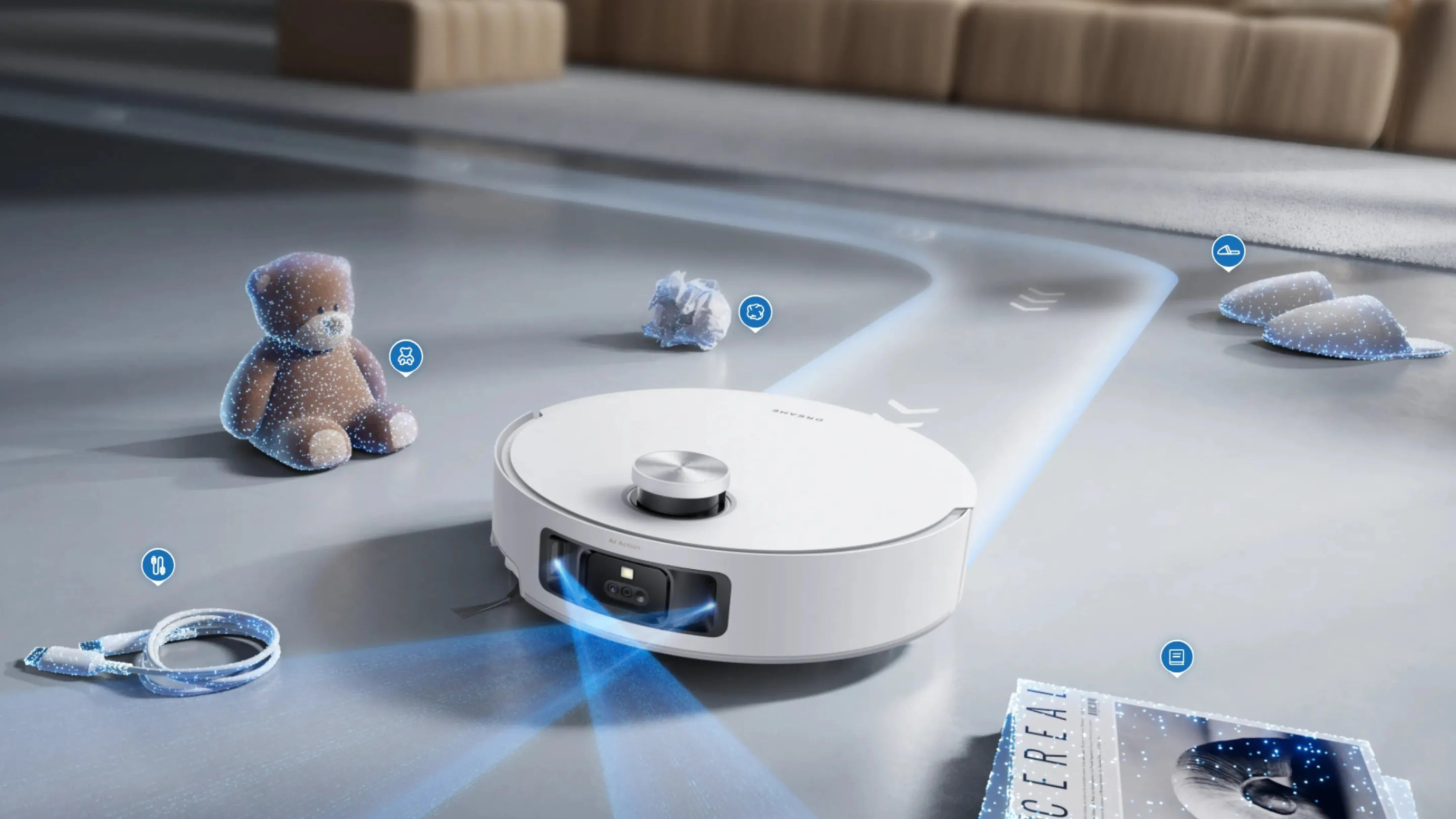 * Zwiększenie mocy ssania: ten tryb jest dostępny w aplikacji Dreamehome. Po wykryciu dywanu robot odkurzający będzie sprzątał z maksymalną mocą zasysania. Funkcja niedostępna w Trybie cichego ssania.