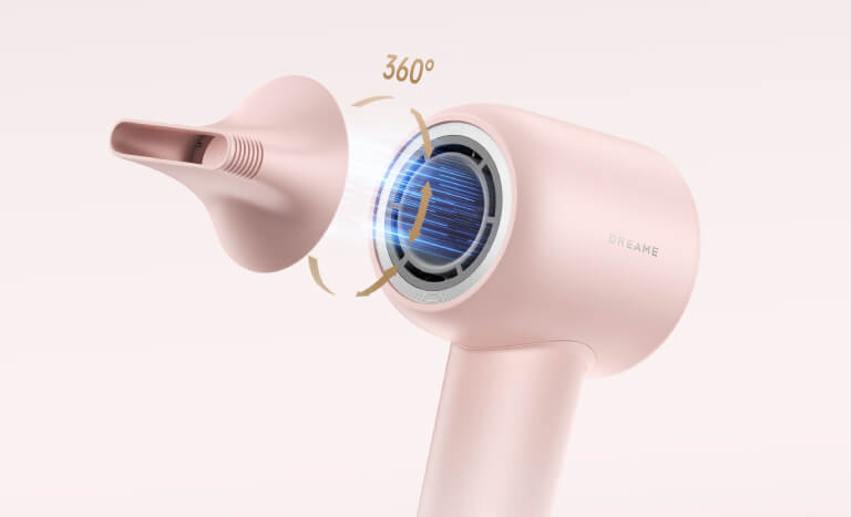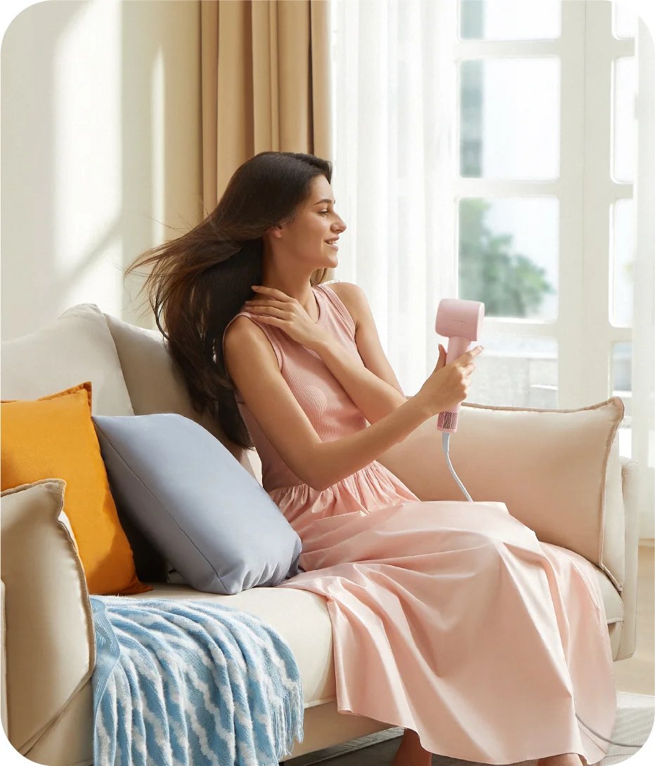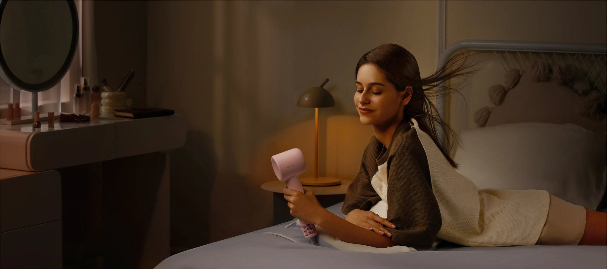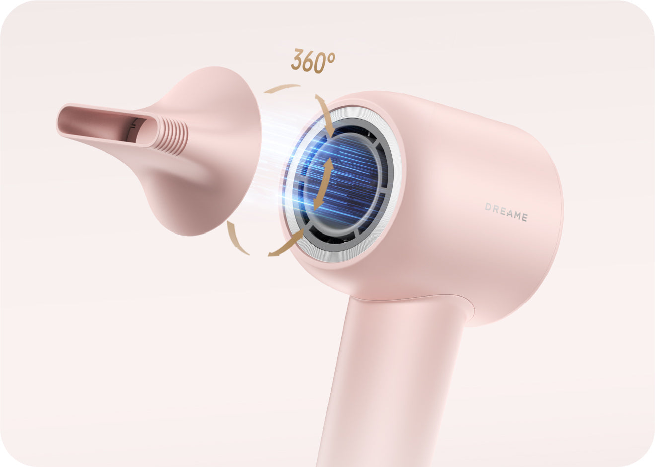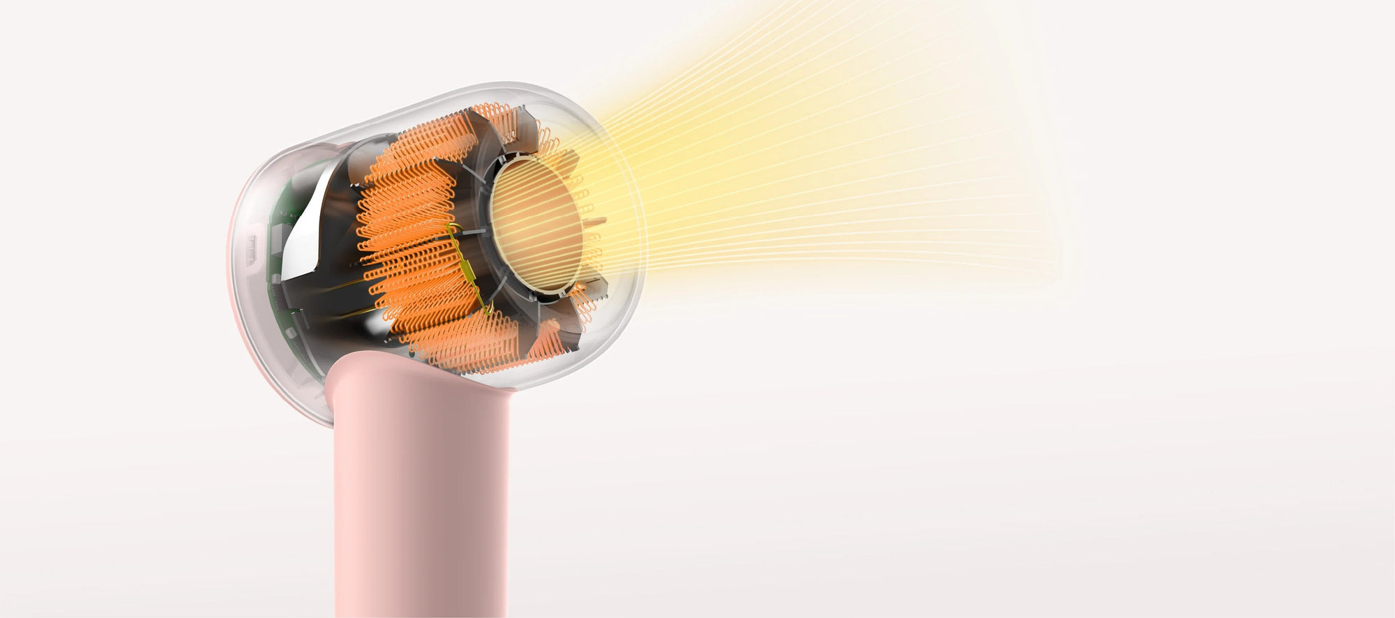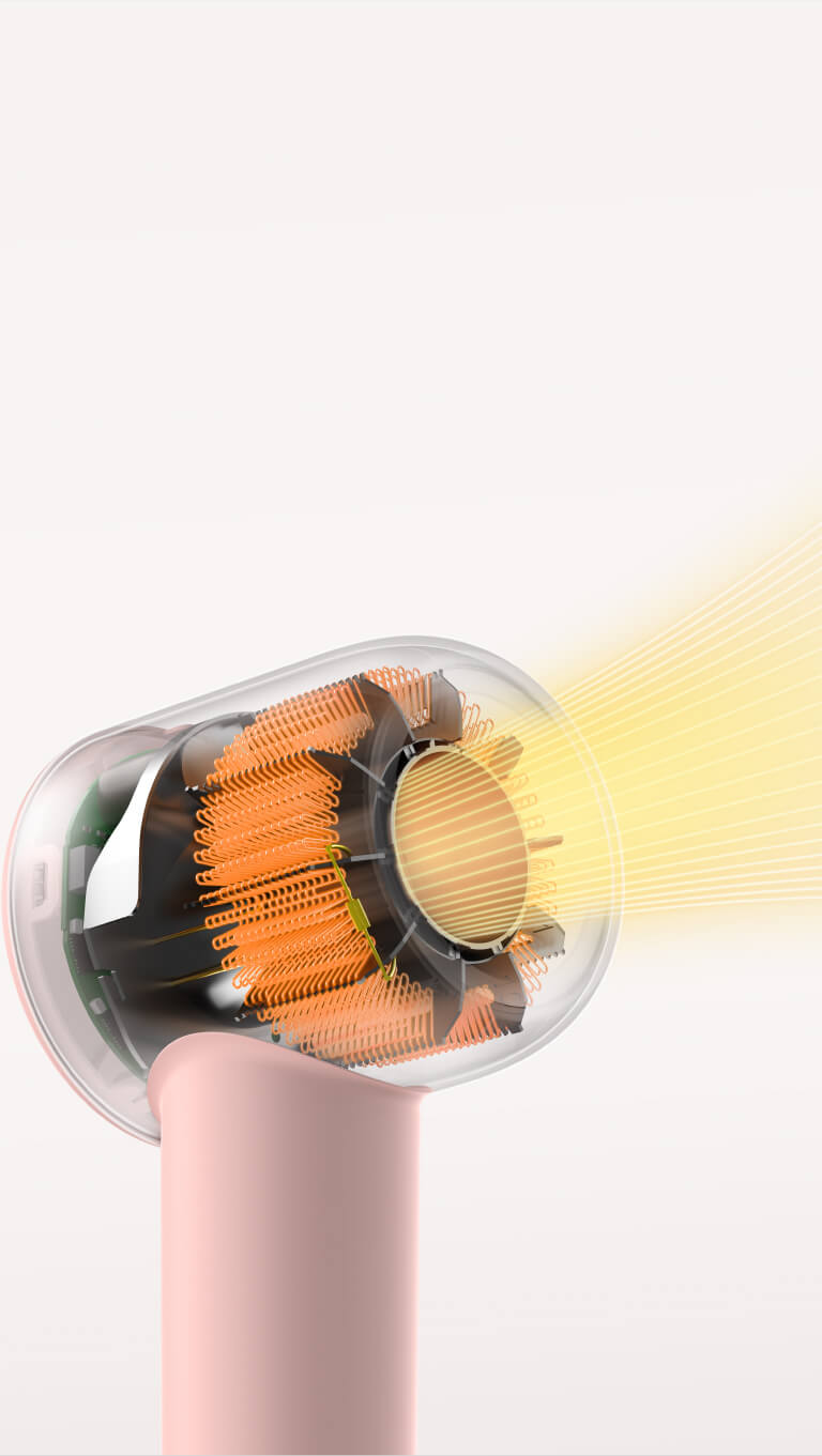 Szybka suszarka do włosów Dreame Hair Gleam zapewnia bardzo dużą prędkość powietrza suszącego, sięgającą 65 m/s*, oraz natężenie przepływu wynoszące 55 m³/h**. Oznacza to silny strumień powietrza, którego efektem jest skuteczne suszenie włosów. Strumień powietrza dociera bezpośrednio do korzeni włosów i delikatnie usuwa wodę z powierzchni włosów. Ciesz się swobodą pielęgnacji włosów dzięki szybkiemu, 3-minutowemu suszeniu.