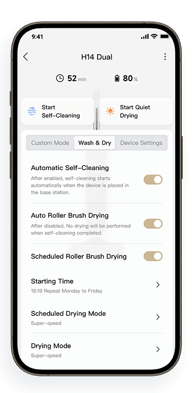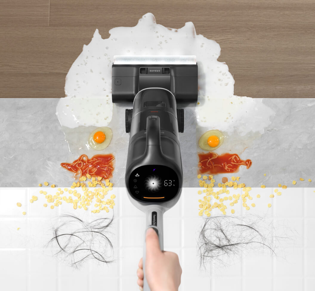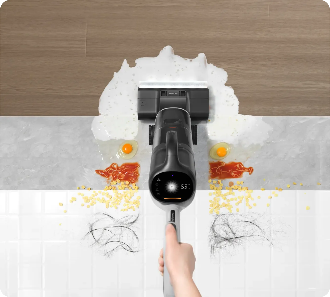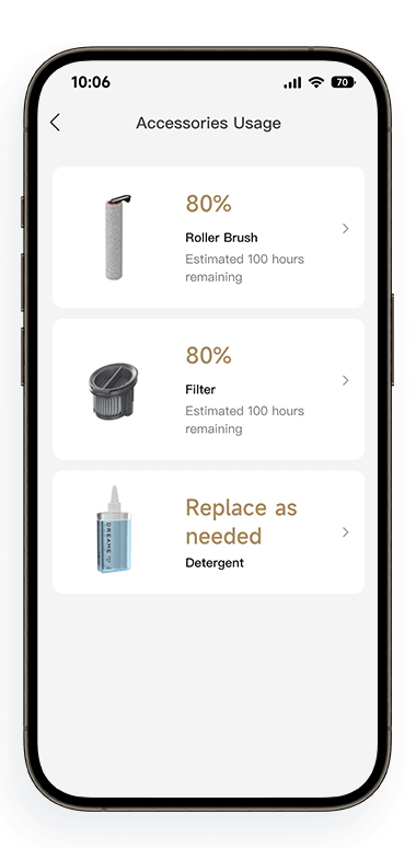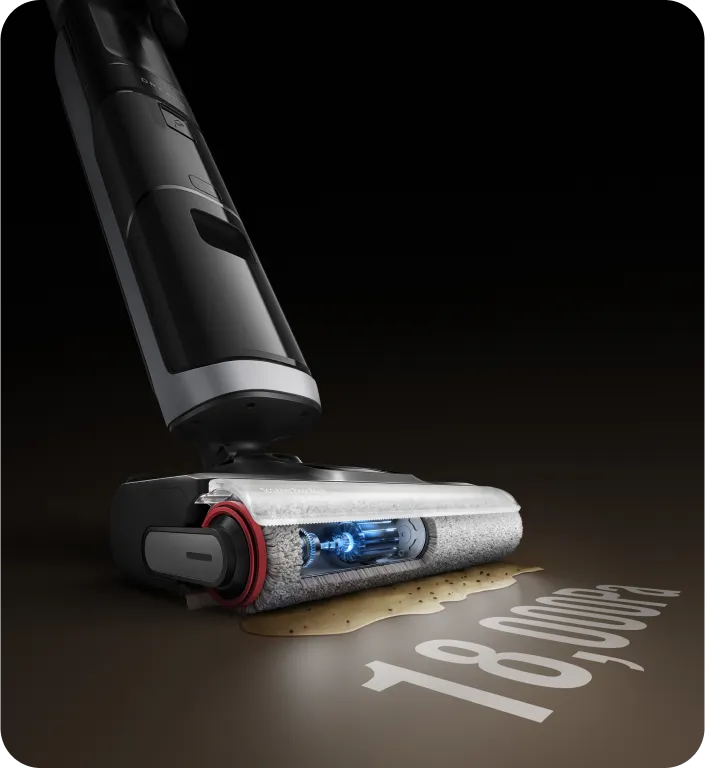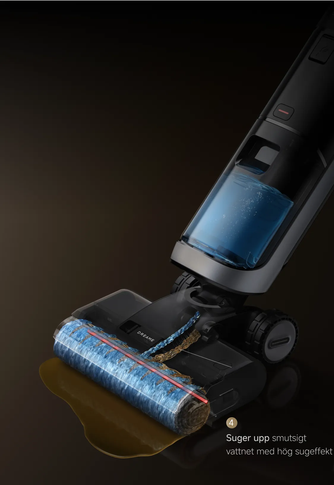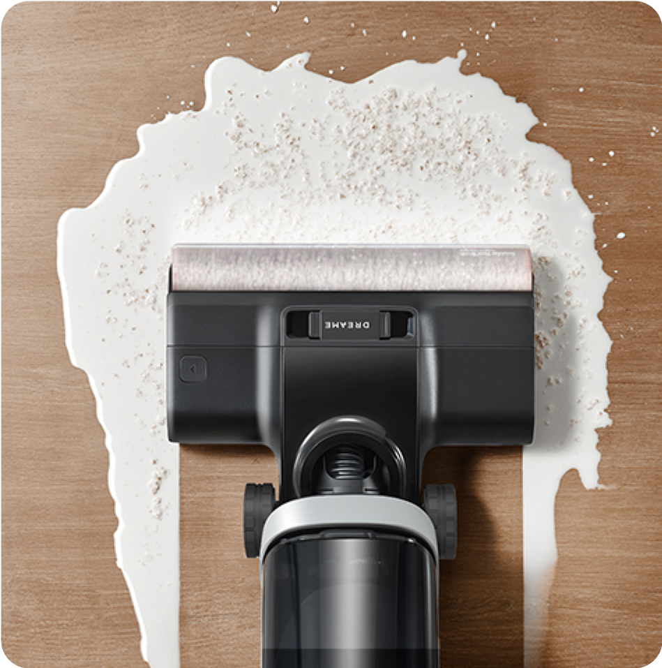 ⁶ Jedno napełnienie, miesiąc sprzątania: pełny zbiornik roztworu do czyszczenia o pojemności 120 ml umożliwia sprzątanie przez 30 dni (przy stosunku 1:200), na podstawie testów laboratoryjnych firmy Dreame. Rzeczywiste warunki użytkowania mogą dawać inne wyniki.