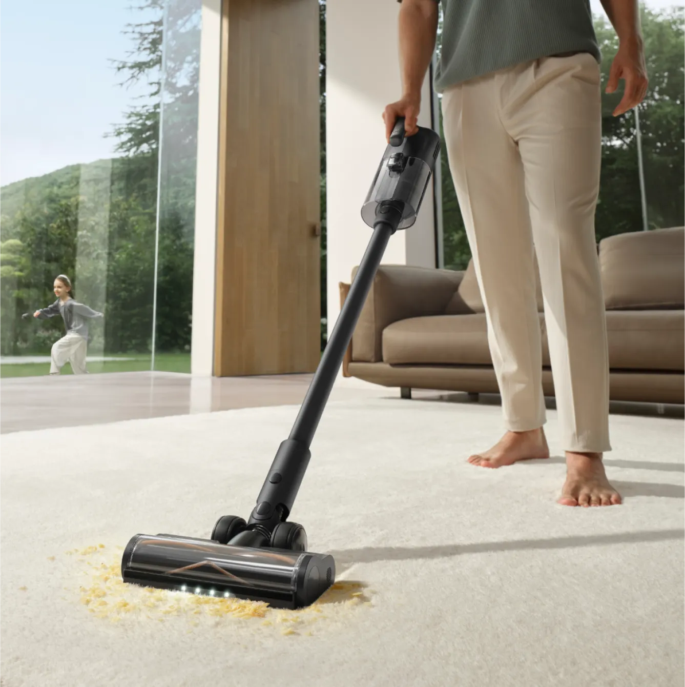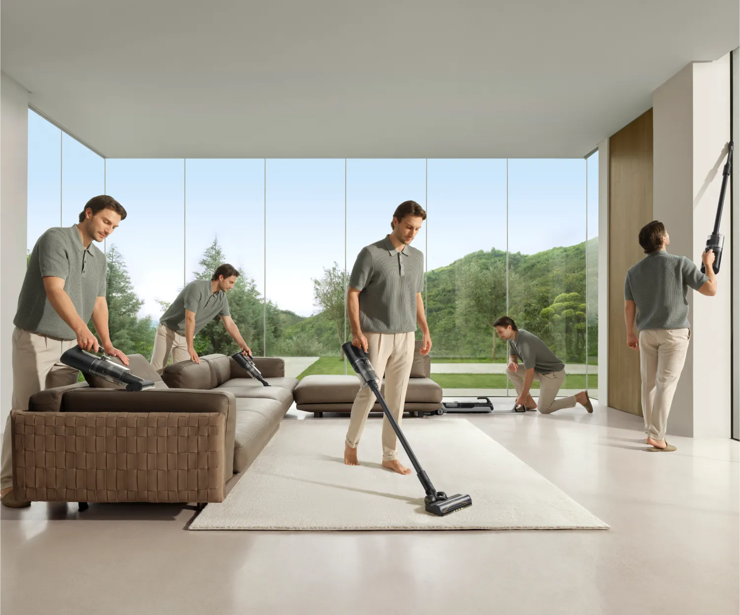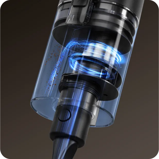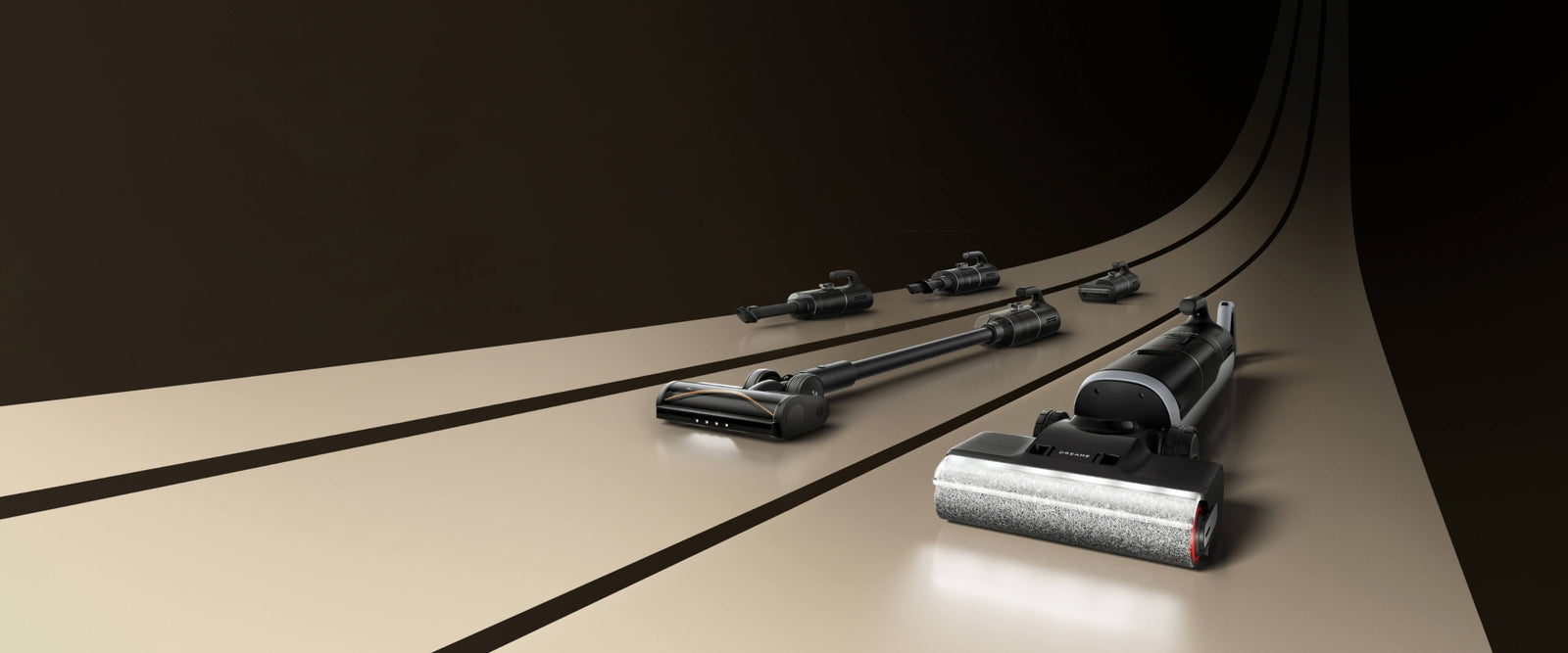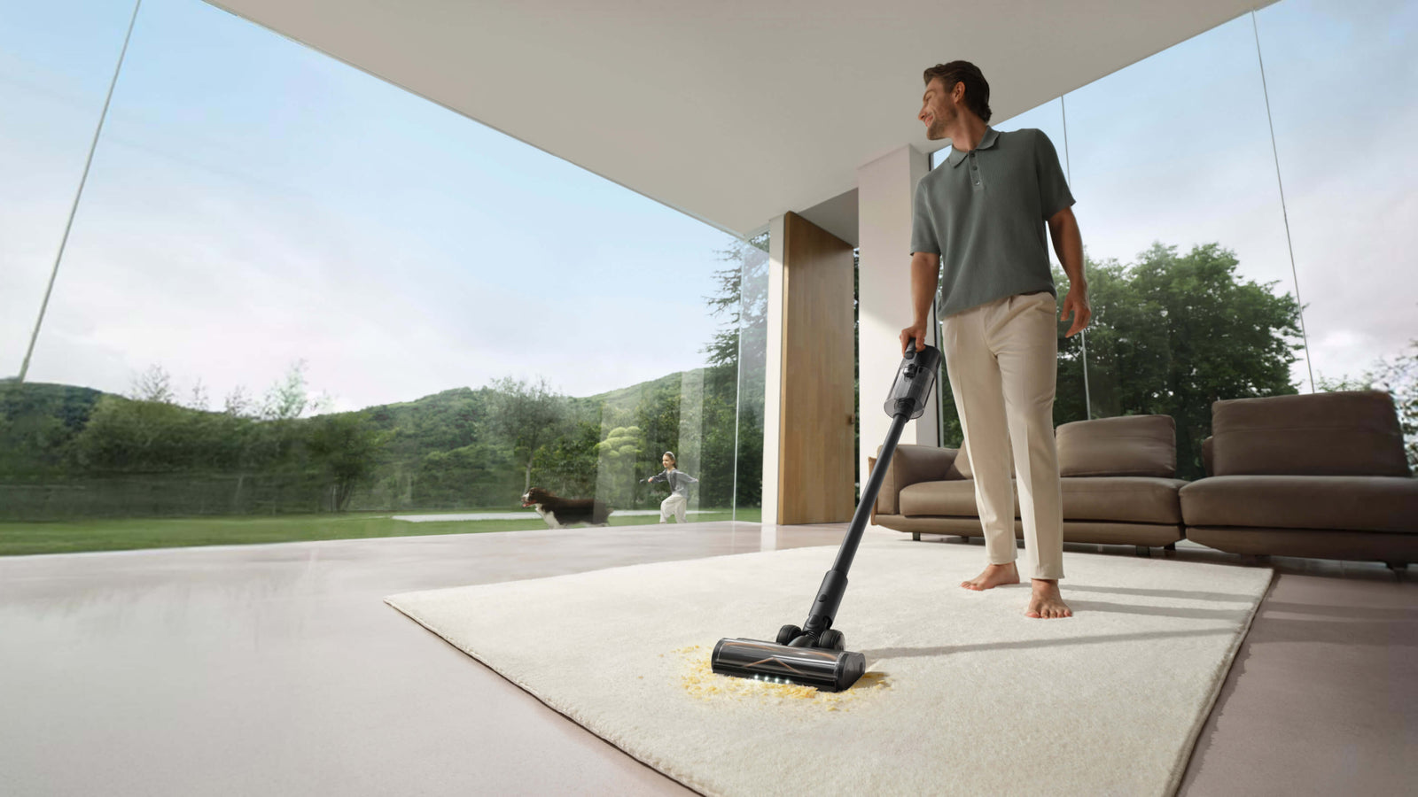 ¹180°, 14 cm, 9,8 cm: cały korpus odkurzacza mieści się w przestrzeniach o wysokości zaledwie 14 cm, a głowica szczotki — zaledwie 9,8 cm. Gdy odkurzacz znajduje się w pozycji płaskiej, uchwyt silnika znajduje się 18 cm od podłoża, jak wynika z danych uzyskanych z naszego wewnętrznego laboratorium.