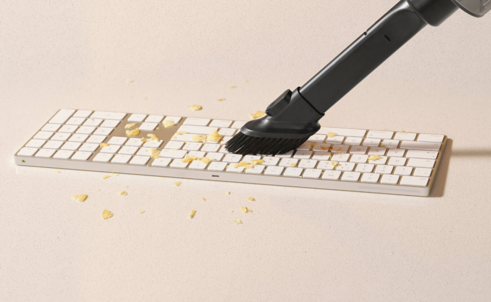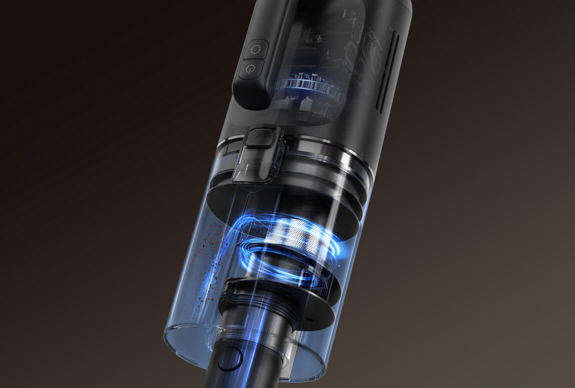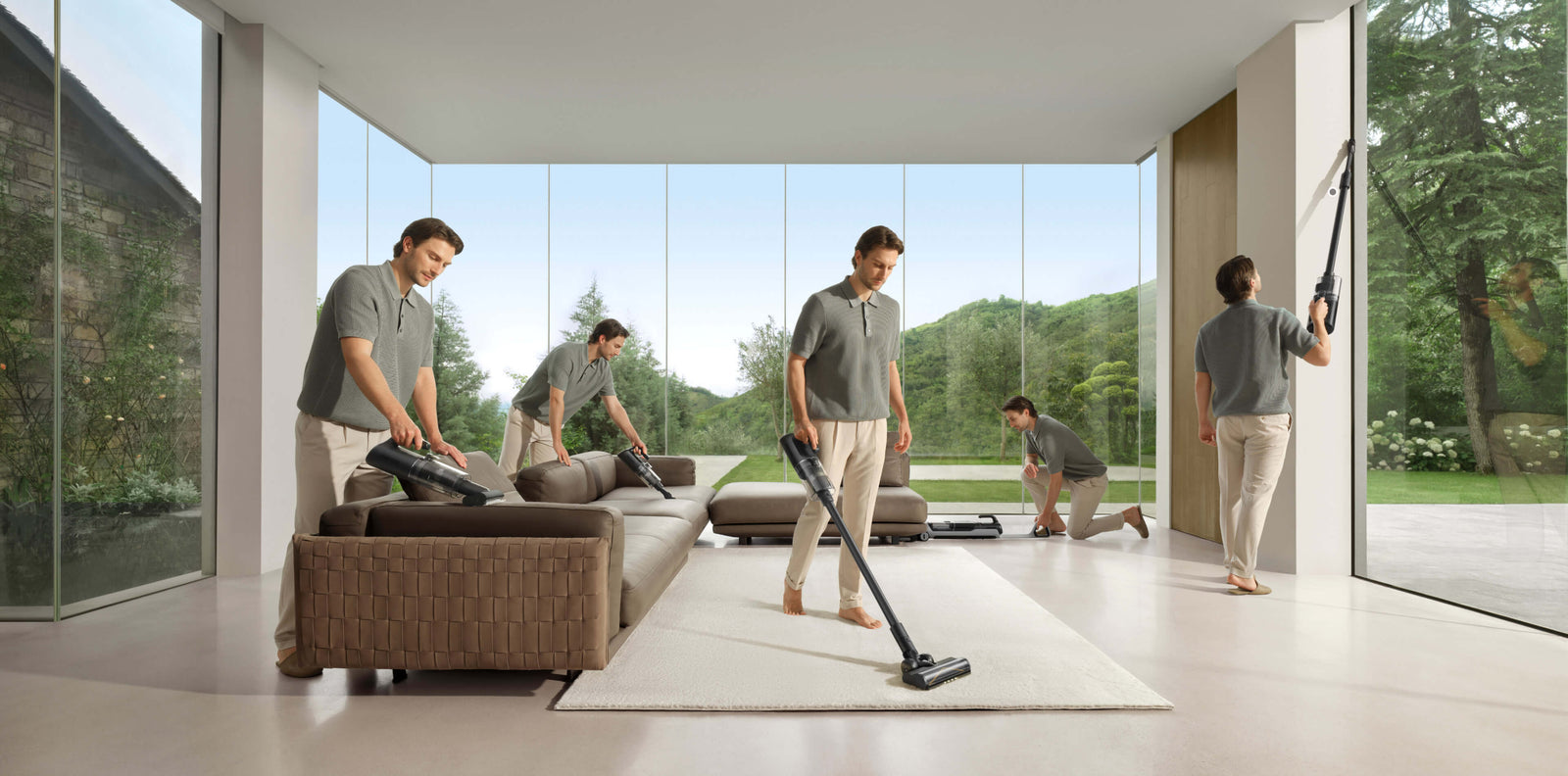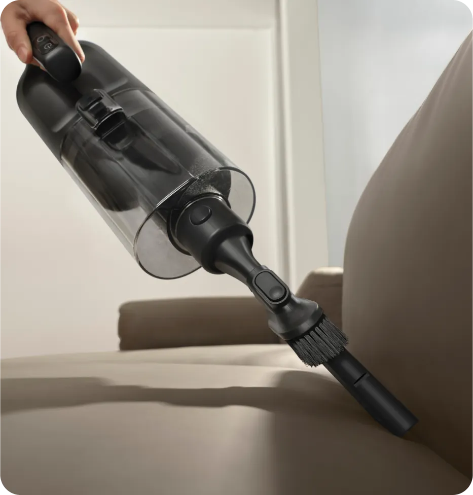 ¹180°, 14 cm, 9,8 cm: cały korpus odkurzacza mieści się w przestrzeniach o wysokości zaledwie 14 cm, a głowica szczotki — zaledwie 9,8 cm. Gdy odkurzacz znajduje się w pozycji płaskiej, uchwyt silnika znajduje się 18 cm od podłoża, jak wynika z danych uzyskanych z naszego wewnętrznego laboratorium.