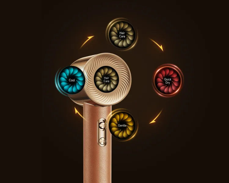 Silnik suszarki Hair Miracle pracujący z prędkością 130 000 obr./min* zapewnia prędkość powietrza na poziomie 70 m/s** oraz przepływ powietrza na poziomie 55 m³/h*, co maksymalizuje skuteczność suszenia. Silny strumień powietrza dociera do cebulek włosów, szybko odparowując wilgoć i zapewniając całkowite wysuszenie włosów sięgających barku w ciągu 3 minut*.