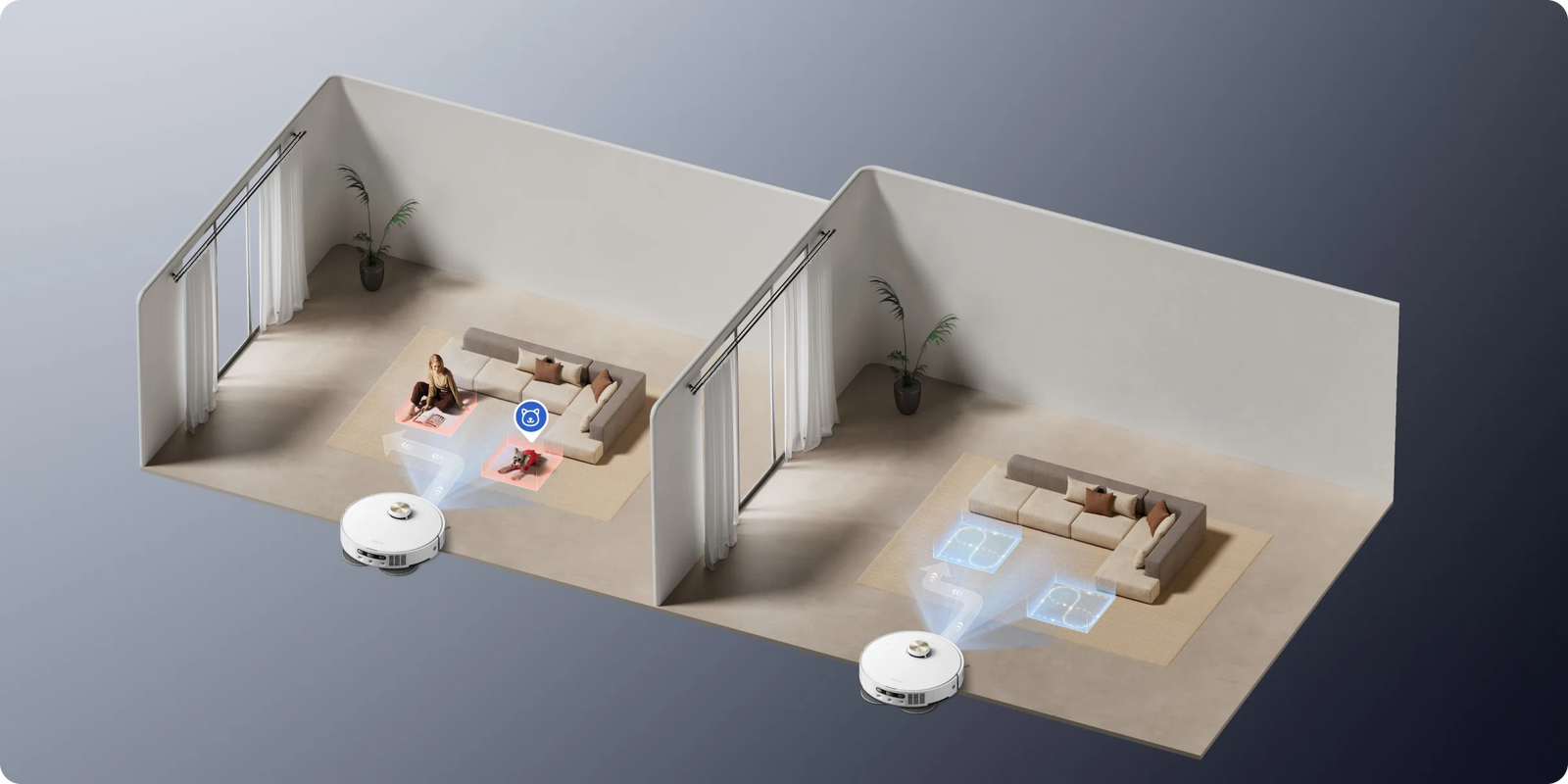 Wykrywanie brudu/inteligentne ponowne mycie mopa i ponowne mopowanie podłóg