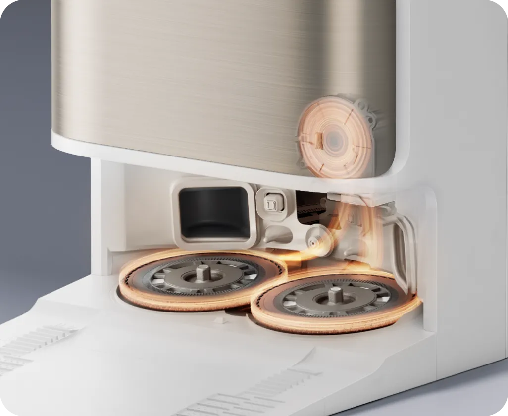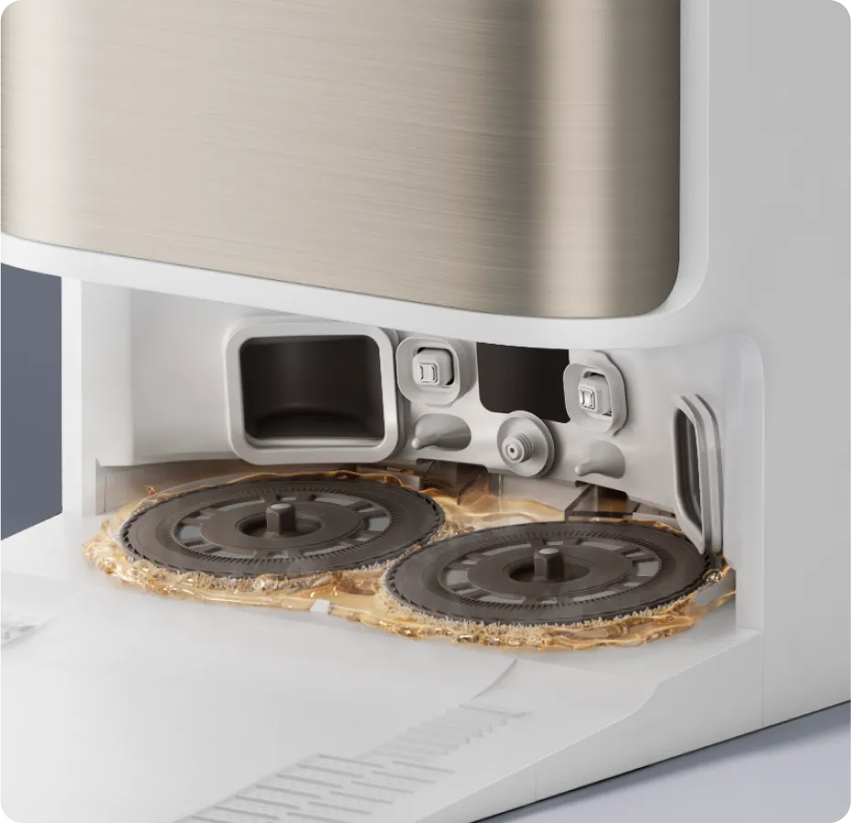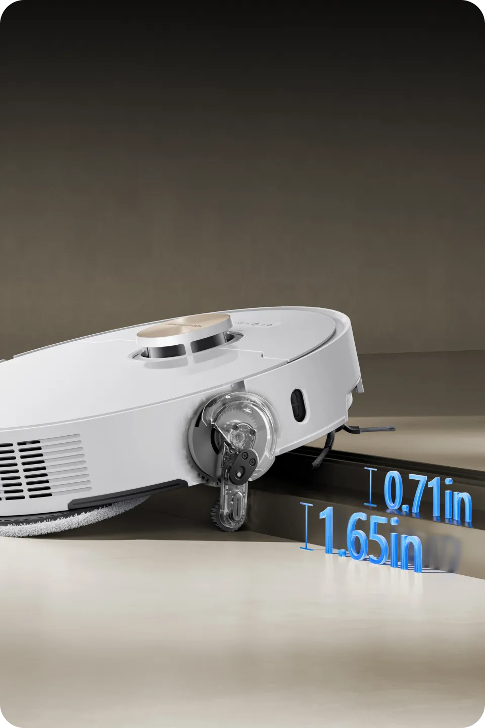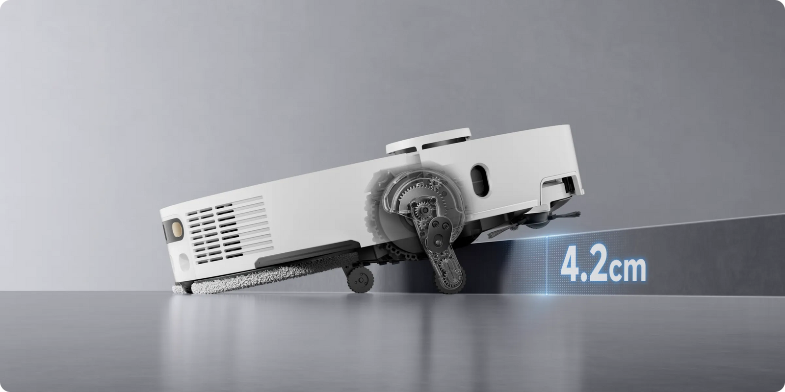 * 10,5 mm: na podstawie testów przeprowadzonych przez wewnątrzzakładowe laboratorium. Różnica w wysokości automatycznego odkurzacza przed i po podniesieniu mopów wynosi 10,5 mm.