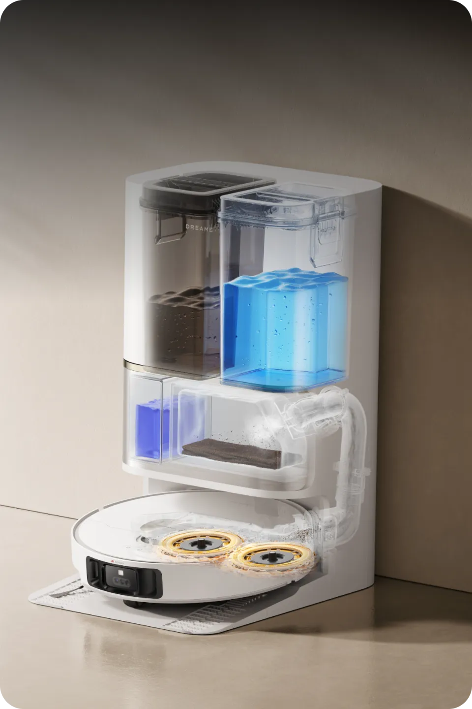 * Funkcje ponownego mycia mopa i ponownego mopowania podłóg są dostępne po ich skonfigurowaniu przez użytkownika w trybie CleanGenius™ w aplikacji Dreamehome.