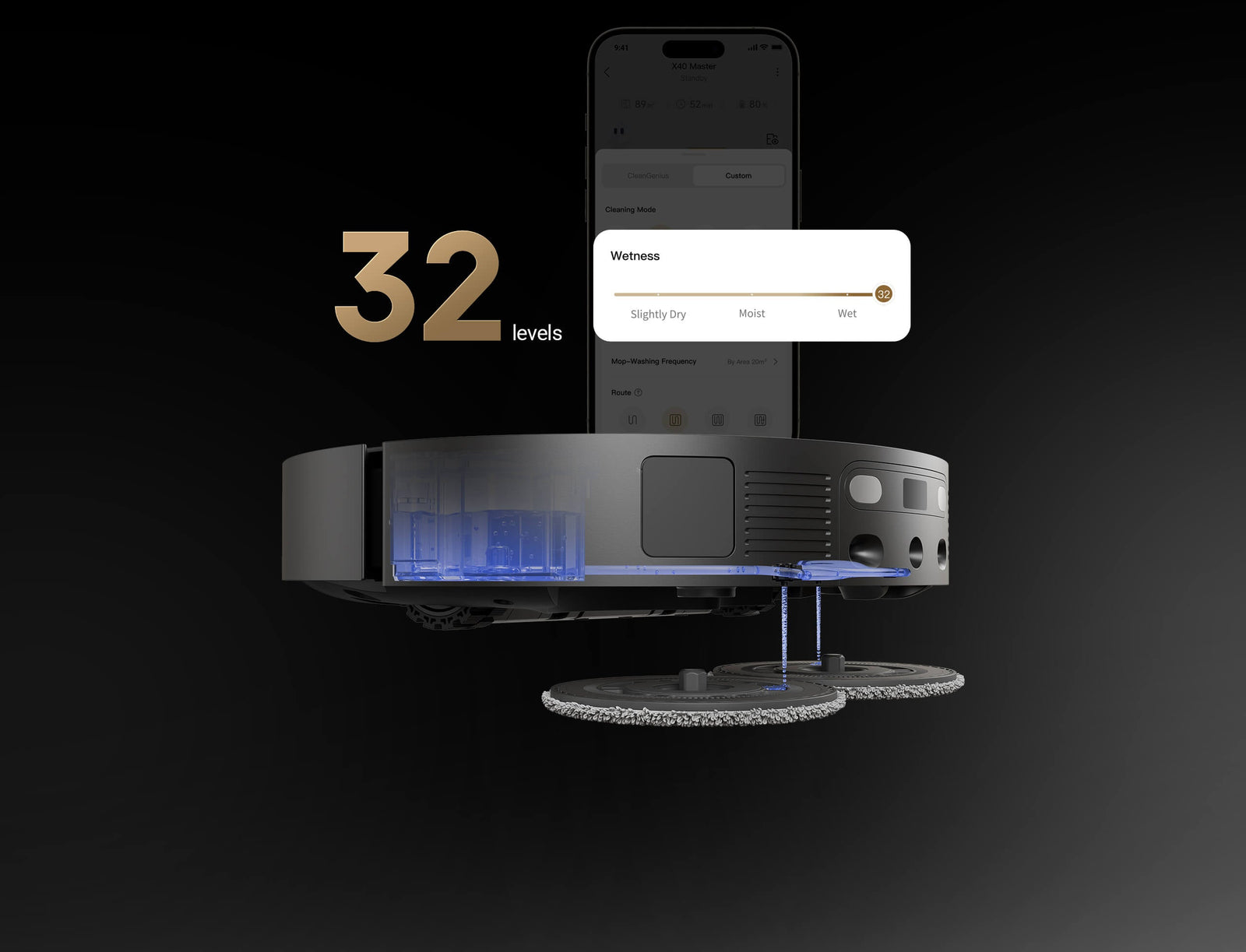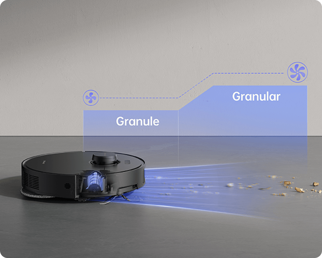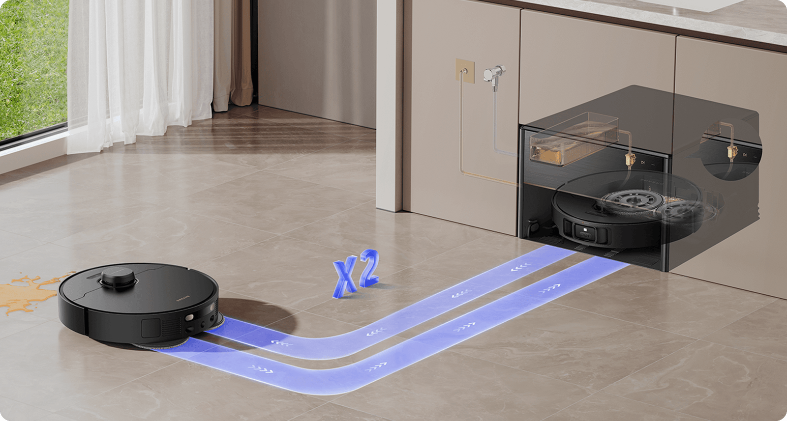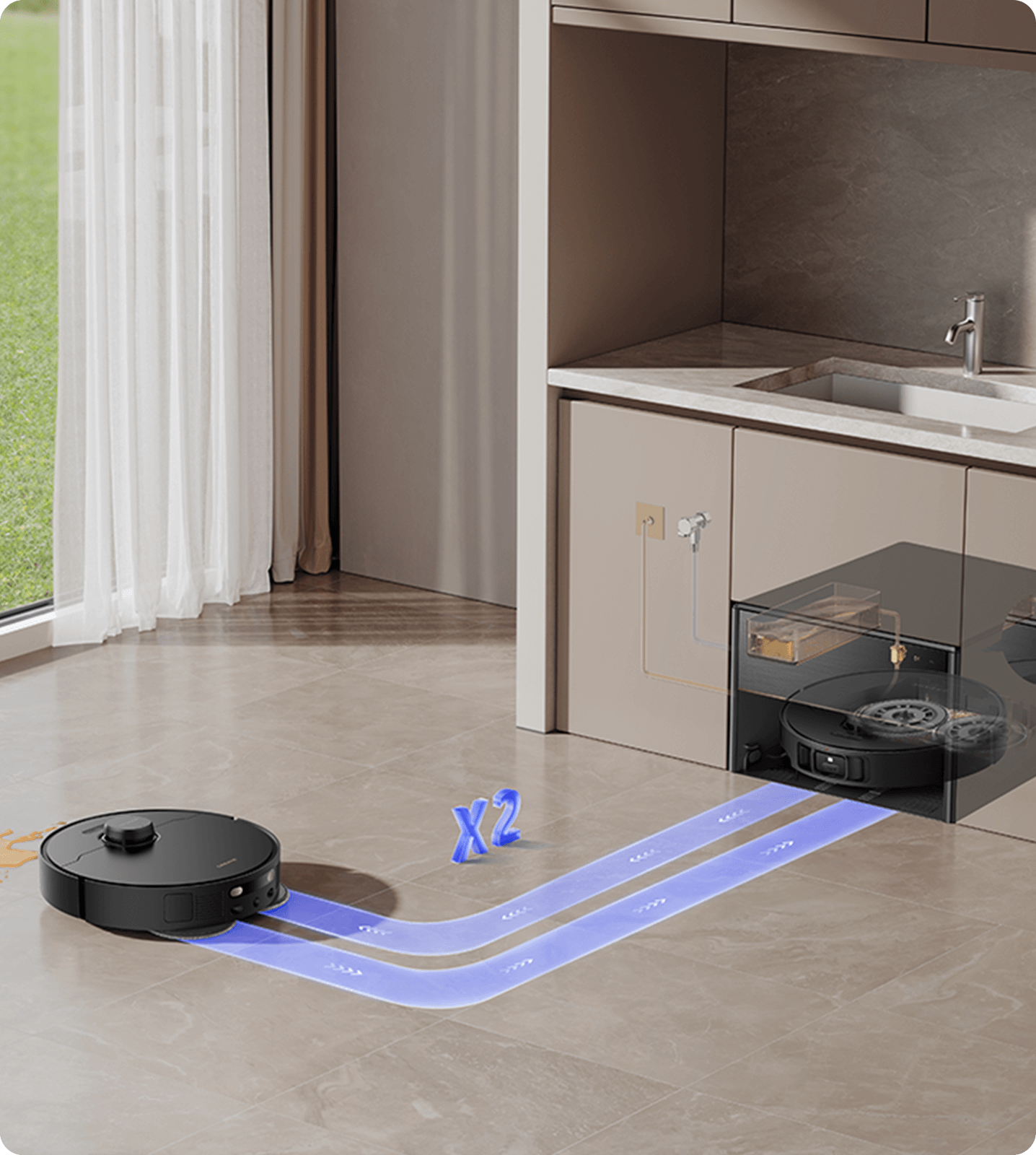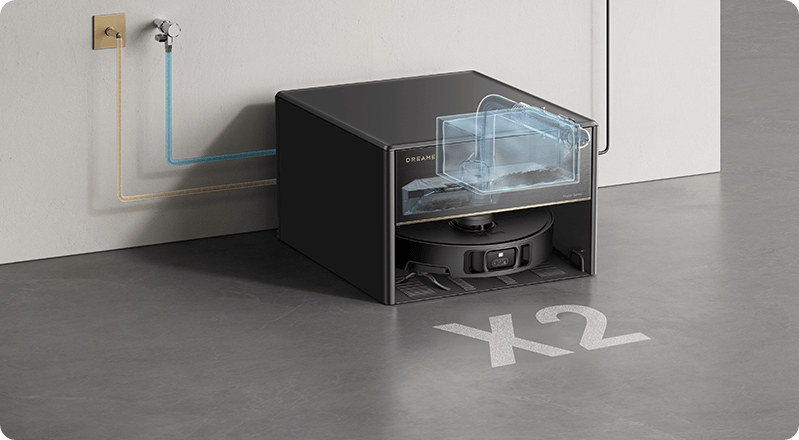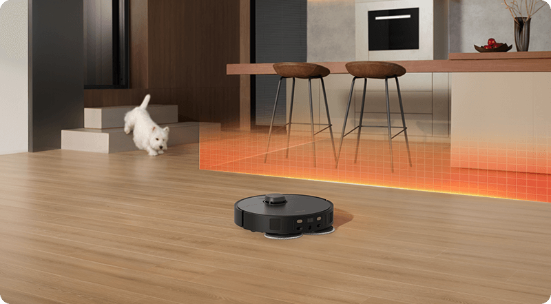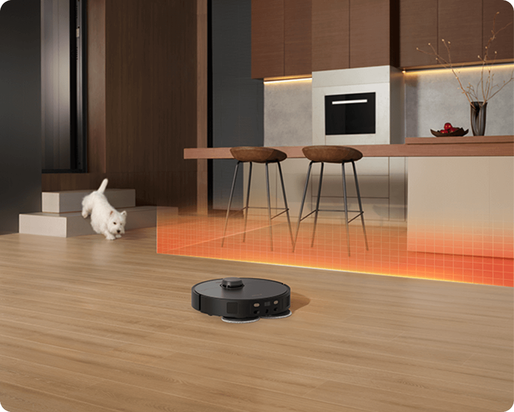 Odkryj zaawansowane możliwości sprzątania dzięki kamerze RGB X40 Master i systemowi Inteligentnego wykrywania zabrudzeń*. Ta inteligentna technologia precyzyjnie identyfikuje zabrudzenia podłogi, dostosowując technikę czyszczenia do wszystkich warunków — od kurzu po uporczywe plamy. Dokładne sprzątanie z optymalną prędkością 0,1 m/s** zapewniające nieskazitelnie czyste podłogi przy każdym przejściu.