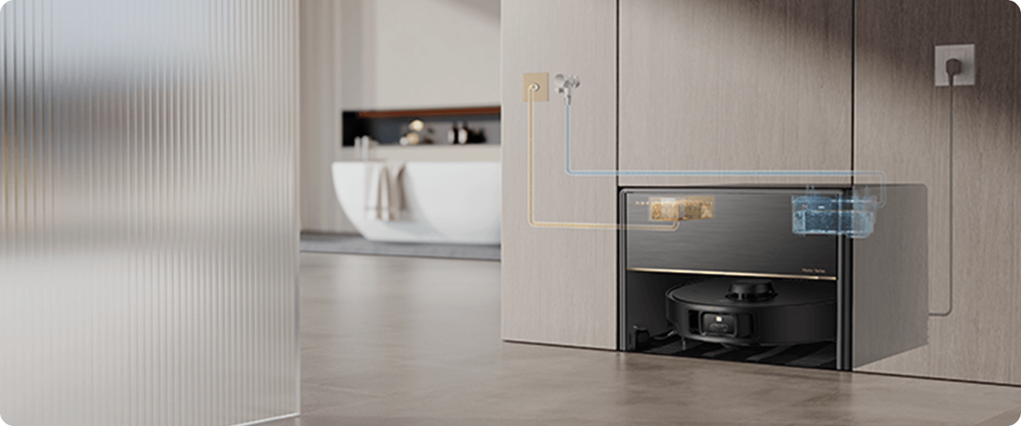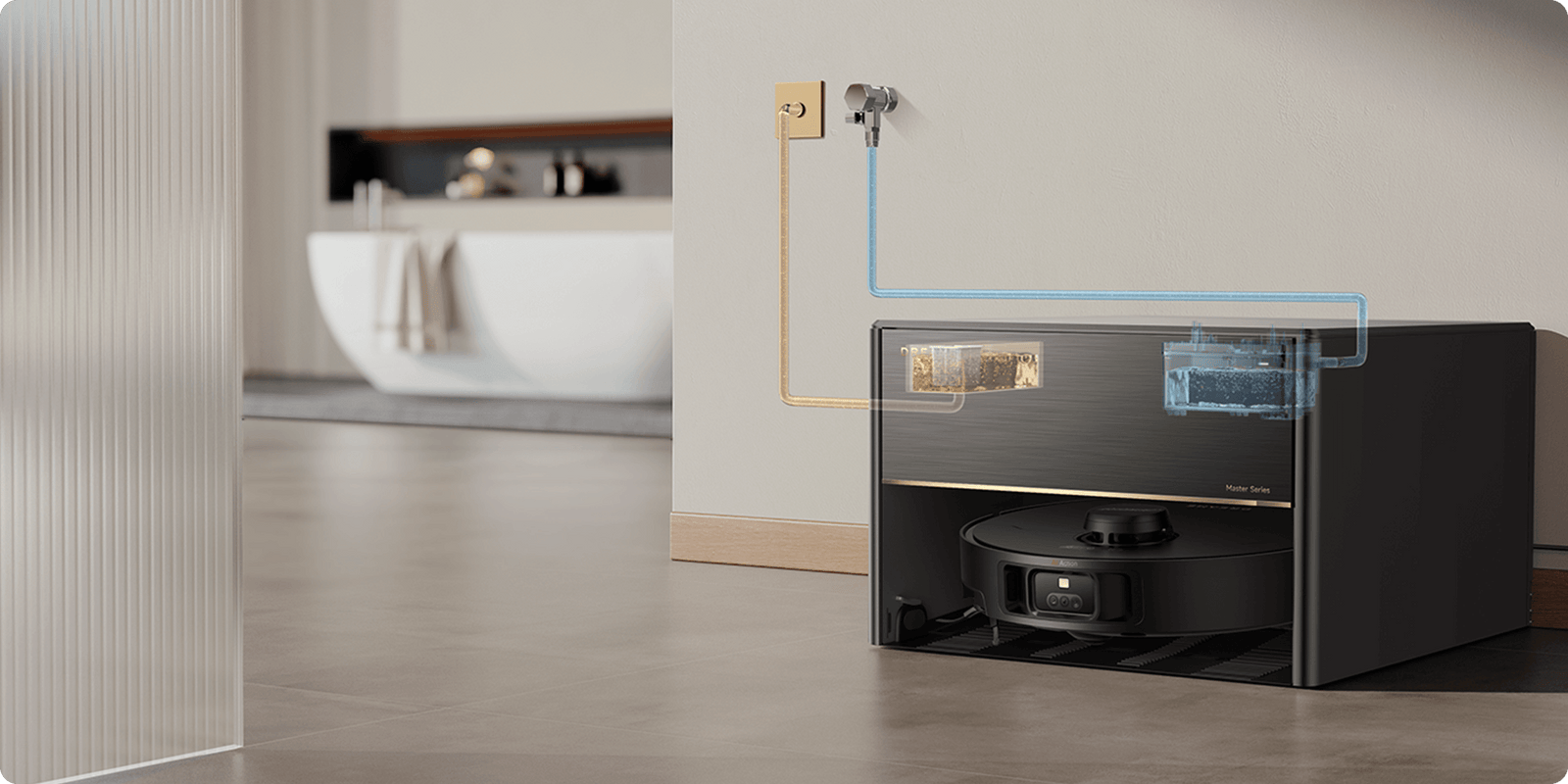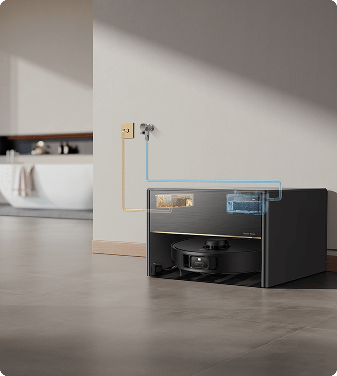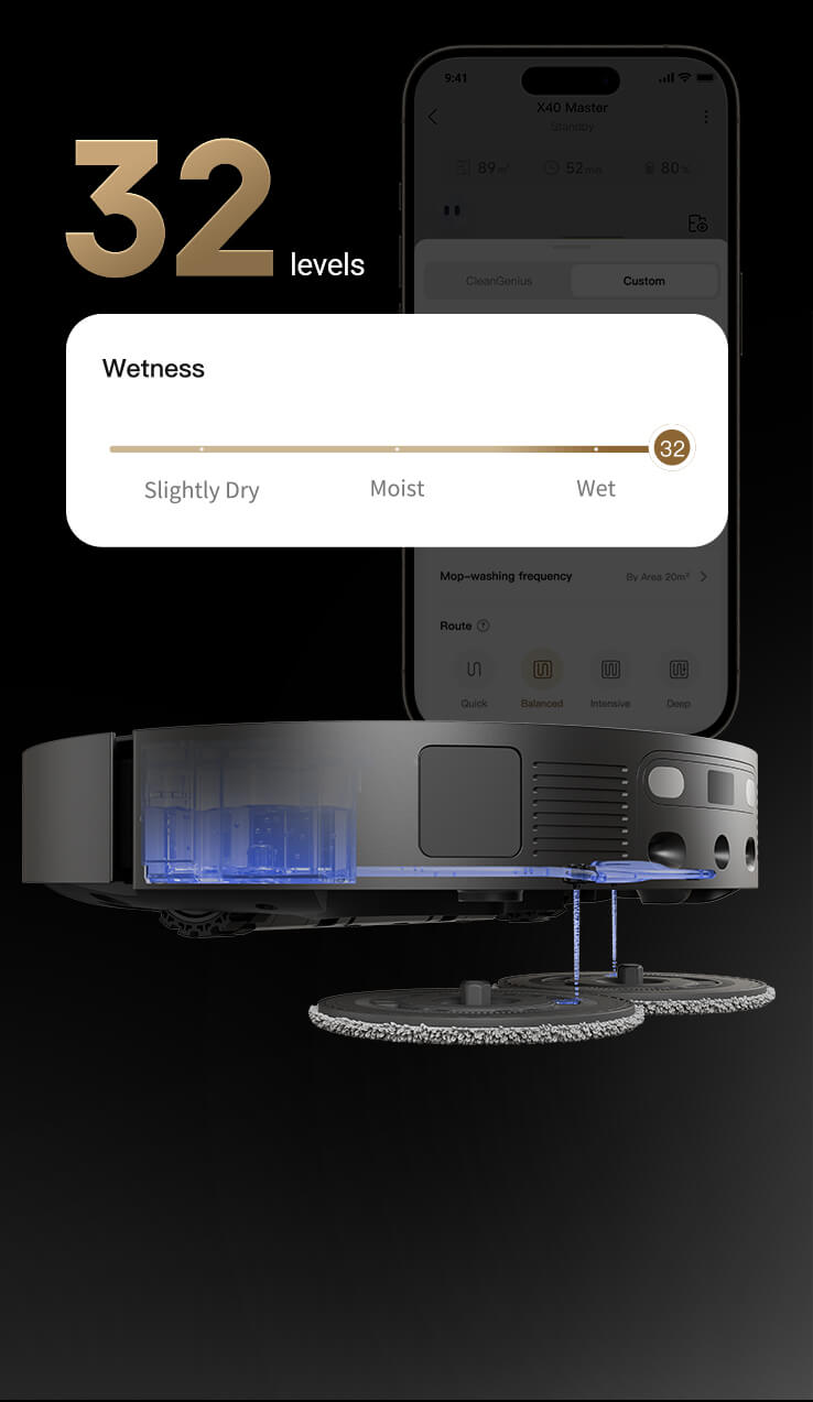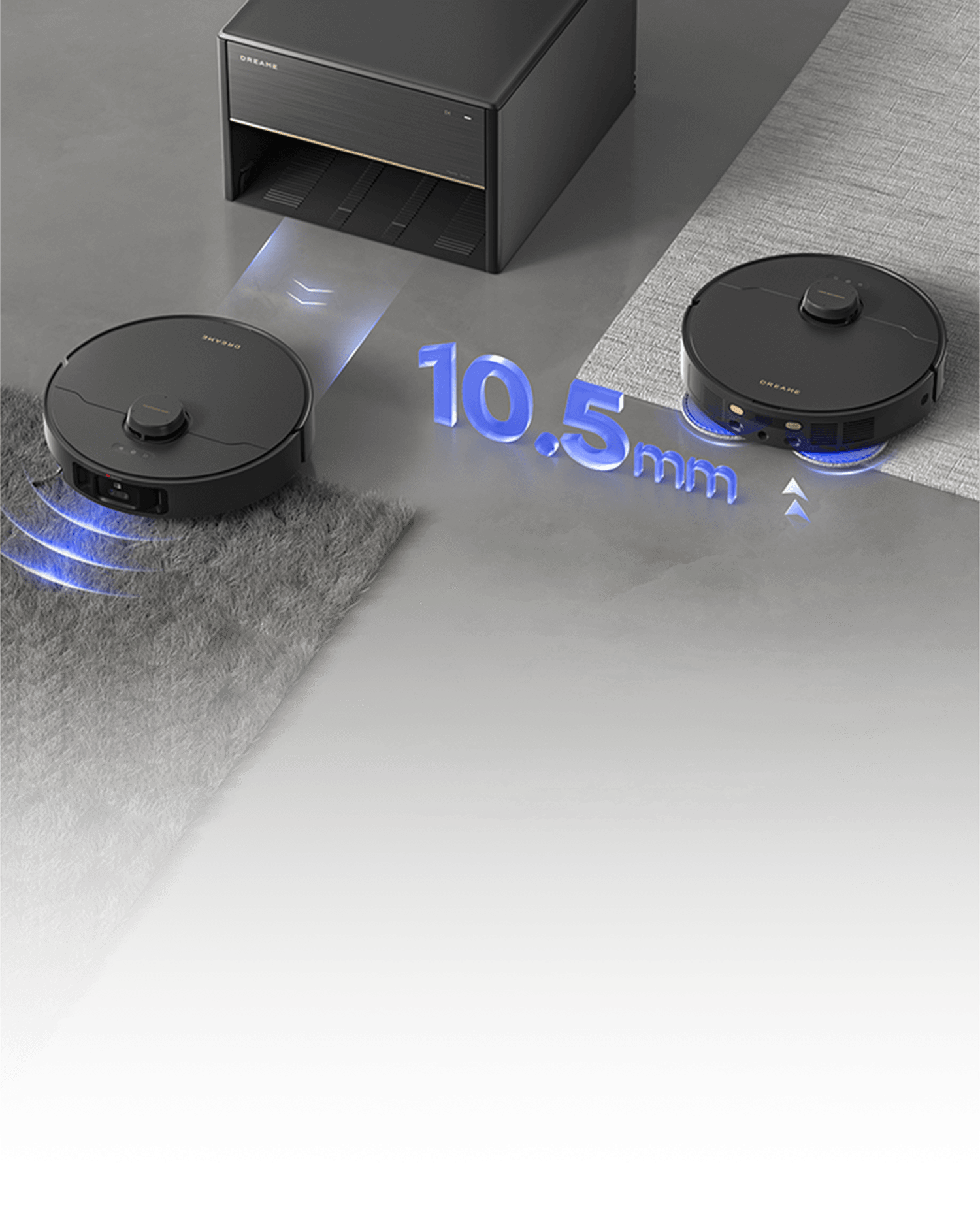 Odkryj zaawansowane możliwości sprzątania dzięki kamerze RGB X40 Master i systemowi Inteligentnego wykrywania zabrudzeń*. Ta inteligentna technologia precyzyjnie identyfikuje zabrudzenia podłogi, dostosowując technikę czyszczenia do wszystkich warunków — od kurzu po uporczywe plamy. Dokładne sprzątanie z optymalną prędkością 0,1 m/s** zapewniające nieskazitelnie czyste podłogi przy każdym przejściu.