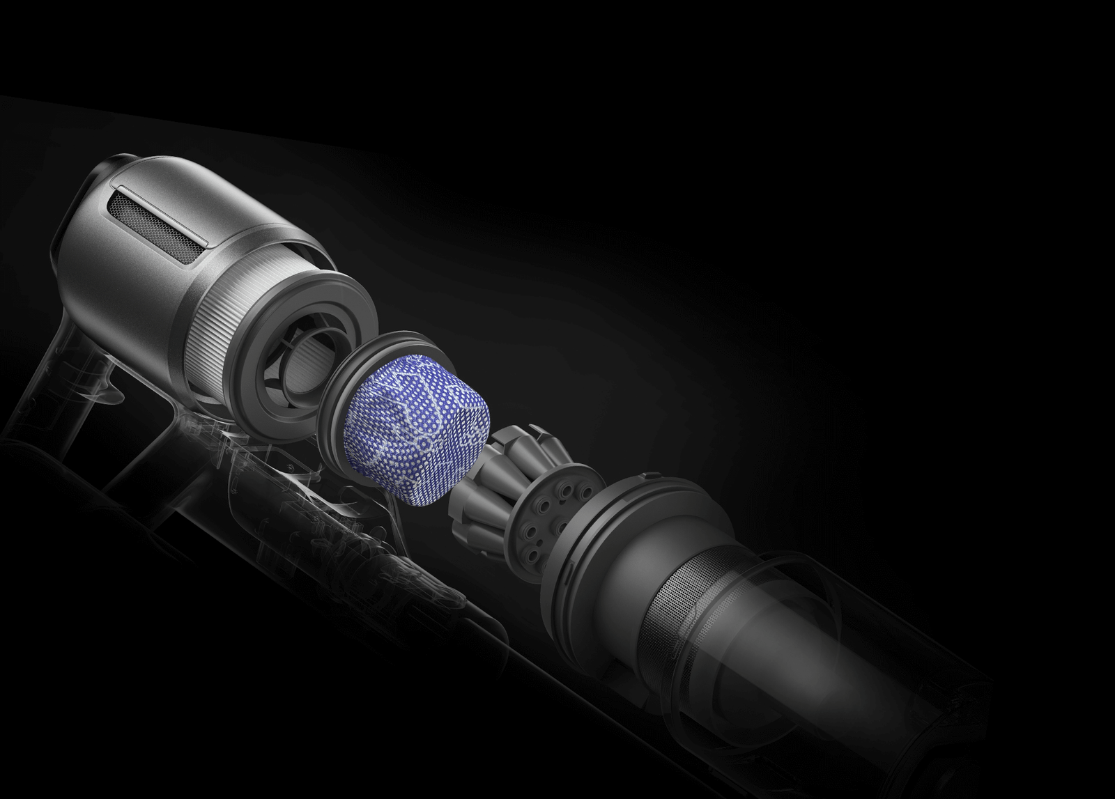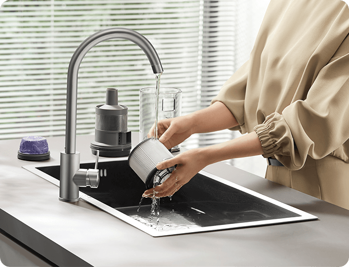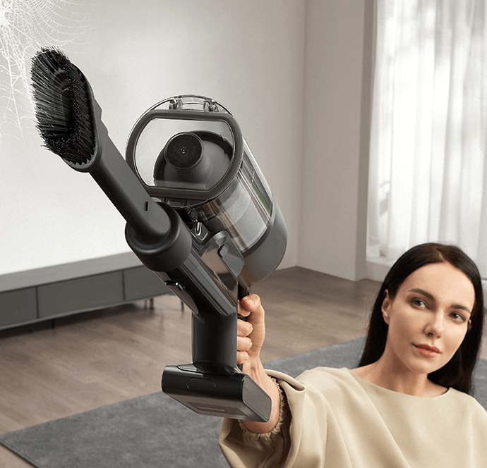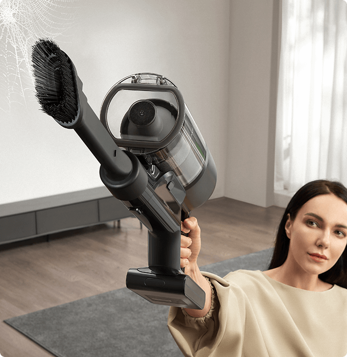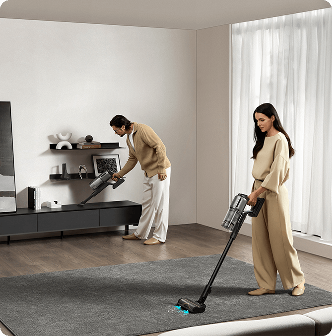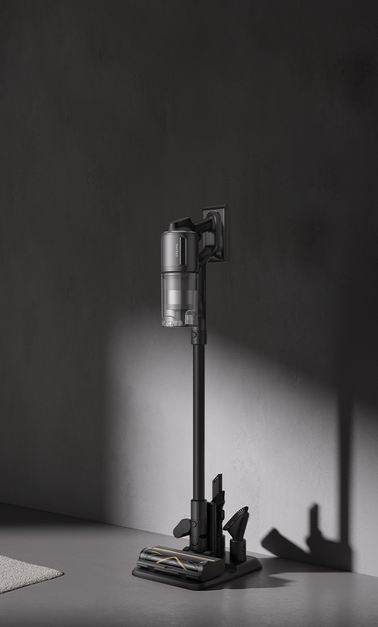 * 310 AW, 150,000 obr./min: w oparciu o dane z wewnątrzzakładowego laboratorium; rzeczywista wydajność może się różnić. Moc ssania 310 AW, to najwyższa wartość na linii produkcyjnej bezprzewodowych odkurzaczy pionowych Dreame; stan na maj 2024 r.